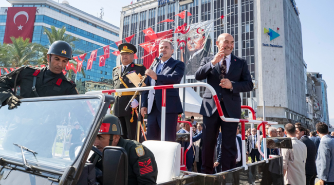 30 Ağustos Zafer Bayramı kutlamaları Cumhuriyet Meydanı’nda düzenlenen geçit töreniyle devam etti. Törende İzmir milletvekilleri, ilçe belediye başkanları, siyasi partilerin il ve ilçe başkanları, oda, birlik ve sivil toplum kuruluşu başkanları, rektörler ve İzmirliler yer aldı. Törende protokol, ilk olarak tören birliklerini selamlayıp İzmirlilerin bayramını kutladı. Kara, hava ve deniz birliklerinin resmi geçidine yurttaşlar marşlarla eşlik etti.