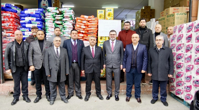 Gıda Çarşısı esnafına ziyarette bulunan Saygılı ile Şahin heyetleriyle birlikte, ziyaret ettikleri esnaflarla hatıra fotoğrafı çektirerek birlik ve beraberlik mesajı verdiler.