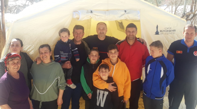 İzmir Büyükşehir Belediye Başkanı Tunç Soyer’in depremin ardından çizdiği yol haritası kapsamında Hatay’da görev alan İtfaiye Dairesi Başkanlığı Yangın ve Acil Müdahale Şube Müdürlüğü’nün personeli Mutlu Odabaş, asker arkadaşı ile ailesinin yardımına koştu. Mutlu Odabaş, 1997’de askerliği birlikte yaptığı Ahmet Aydınlı ile eşi Seza Aydınlı’nın depremde evinin yıkılması üzerine ekip arkadaşlarıyla ailenin köydeki evinin bahçesine çadır kurdu.