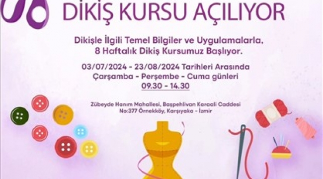 İzmir Büyükşehir Belediyesi Kadın Çalışmaları Şube Müdürlüğü, kadınlara yönelik Mor Makas Dikiş Kursu başlatıyor.