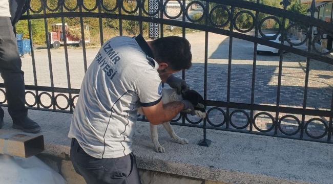 İzmir Büyükşehir Belediyesi itfaiye ekipleri, bu kez de bir köpeğin yardımına koştu. Buca’da kafası demir parmaklıklar arasına sıkışan sahipsiz köpeği kurtaran ekipler, onun yeniden özgürlüğüne kavuşmasını sağladı.