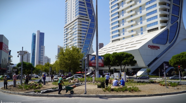 Peyzaj çalışmalarında sulama ihtiyacı yüksek türler yerine, doğal koşullara uyum sağlayabilen, su isteği düşük ve kuraklığa dayanıklı agapanthus, ılgın, zakkum, ateş dikeni, katırtırnağı, abelya, taflan gibi bitkiler tercih edildi. Aynı zamanda uygulama alanlarında cüruf ve bazalt kırma taş ve kaya parçaları ile şık bir görünüm elde edildi. Park ve Bahçeler Dairesi Başkanlığı ekipleri planlama doğrultusunda kamusal alanları yeşillendirmeye devam edecek.
