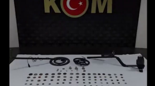 190 adet tarihi eser niteliğinde sikke,10 adet tarihi eser niteliğinde obje,3 adet tarihi eser niteliğinde demir haç,1 adet metal arama dedektörü ele geçirildi.