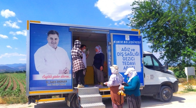 Kınık Belediyesi tarafından hayata geçirilen “Ağız ve Diş Sağlığı Gezici Teşhis ve Tedavi aracı” sağlık hizmetini mevsimlik tarım işçilerinin ayağına götürüyor. Sağlık Bakanlığı ve Kınık Belediyesi işbirliğiyle Sıhhat Projesi kapsamında Kınık Belediyesi tarafından hayata geçirilen “Ağız ve Diş Sağlığı Gezici Teşhis ve Tedavi aracı” sağlık taraması, ağız ve diş tedavileri sağlık hizmetini mevsimlik tarım işçilerinin ayağına götürüyor. 2018 yılının Ocak ayından bu yana vatandaşlara hizmet veren gezici diş sağlığı tarama araçları, kırsalda yaşayan ulaşım yönünden dezavantajlı vatandaşlar başta olmak üzere, özellikle; çocuk, yaşlı, yatalak ve engelli vatandaşlara düzenli olarak diş teşhisi, tedavisi, diş çekimi ve dolgu tedavileri yapılıyor. Tarım sezonun başlamasıyla mevsimlik tarım işçileri de Kınık Belediyesi, Ağız ve Diş Sağlığı Gezici Teşhis ve Tedavi aracında diş sağlığı hizmeti alıyor. “Hedefimiz, bütün vatandaşlarımıza hizmet götürmek” Kınık Belediye Başkanı Dr. Sadık Doğruer, “hedefimiz; kırsalda yaşayan ulaşım yönünden dezavantajlı vatandaşlar başta olmak üzere çocuk, yaşlı, yatalak, engelli vatandaşlara düzenli olarak ağız ve diş sağlığı hizmeti sağlamakla beraber tarım mevsiminde, tarım işçilerimizin de bu imkândan yararlanmasını sağlamak. Vatandaşımızın ayağına bu sağlık hizmetini götürerek, belediye olarak amacımıza ulaşmış oluyoruz” dedi.