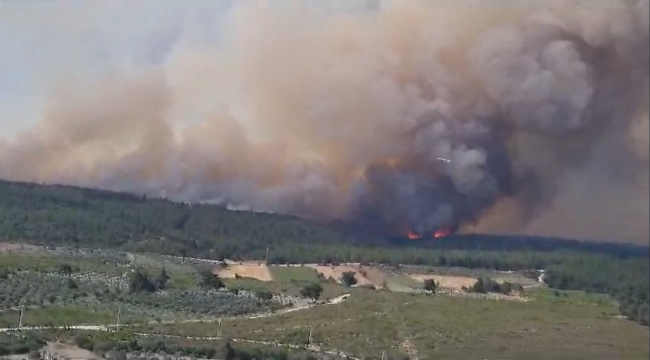 Kınık İlçesinde Ormanlık alanda çıkan yangına müdahale ediliyor