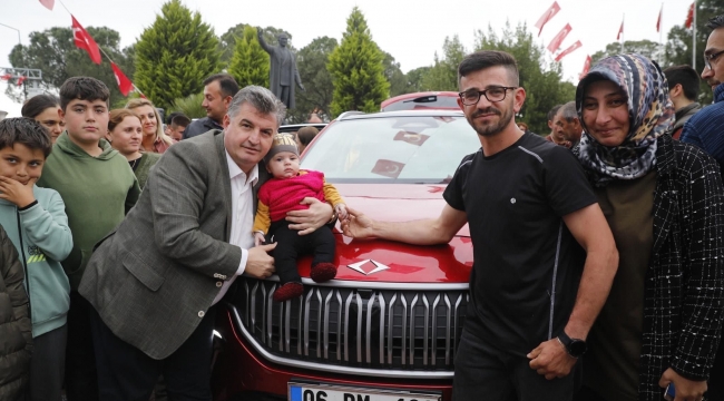 Hükümet Konağı önüne getirilen TOGG Kınık'ta 7'den 70'e herkesin ilgi odağı oldu. "Anadolu kırmızısı" rengi olarak geçen araca ilgi gösterenler TOGG ile hatıra fotoğrafı çektirdi.