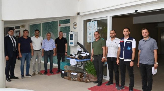 Bu kapsamda, Aydınyer de ilçe merkezinde kurulan stanttaki eski-yeni boruları inceledi.