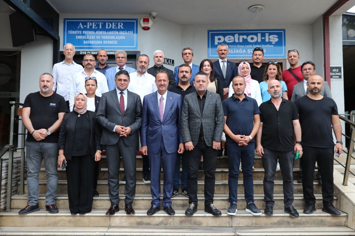 Daha sonra Milletvekili Tamer Osmanağaoğlu Petol İş Aliağa Şubesine ziyaret etti . Aliağa Belediye Başkanı Serkan Acar'ında eşlik ettiği ziyarette MHP Aliağa İlçe Başkanı Nuray Aydemir ve İlçe Yönetim Kuruluda yer aldı.