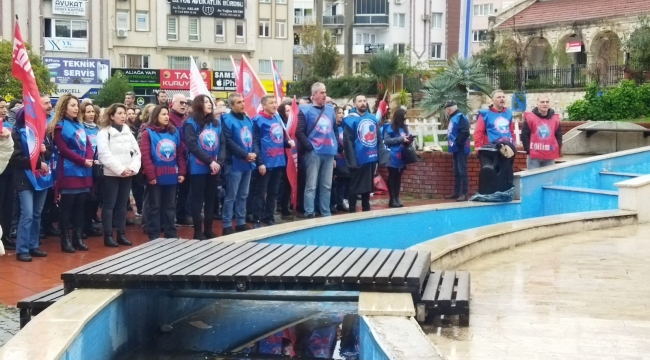 Eğitim İş Aliağa Temsilcisi Samet Arıcıoğlu ve Eğitim Sen İlçe Yönetiminden Deniz Gültekin’in okuduğu ortak basın açıklamasında, yapılan zamların yetersizliği ve ekonomik krizin ağır koşulları protesto edildi.