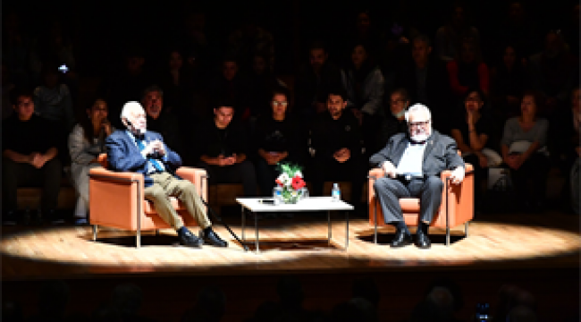 İzmir Büyükşehir Belediyesi, “Cumhuriyetimizin 101.Yılı’’ söyleşisinde ünlü bilim insanları Prof. Dr. İlber Ortaylı ve Prof. Dr. Celal Şengör’ü konuk etti. Söyleşiye yoğun ilgi gösteren İzmirliler, AASSM’nin salonunu doldurup sahneye taştı. Başkan Tunç Soyer’in de izlediği söyleşide Ortaylı ve Şengör, bilim, tarih, Cumhuriyet, Atatürk, eğitim sistemi gibi birçok konuya dair bilgi ve anekdotlar anlattı.
