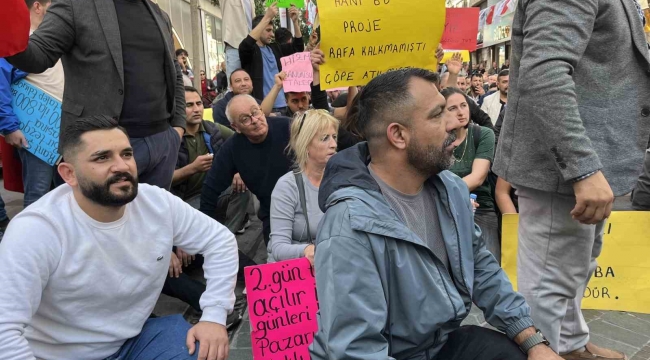 Pazarcı esnafından Karşıyaka'da oturma eylemi