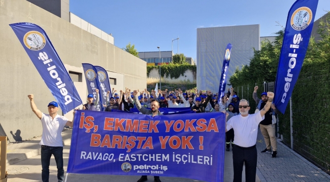 Petrol-İş Sendikası Aliağa ve Gebze Şubeleri'nde örgütlü olan Ravago Eastchem ve Enplast işçileri, sabah saatlerinde işyerlerine grev kararlarını astı. İşçiler, fabrikalarından merkez binaya yürüyüş düzenleyerek “Şalter inecek, bu iş bitecek” ve “İş ekmek yoksa barış da yok” sloganları eşliğinde grev ilanını panoya astı.
