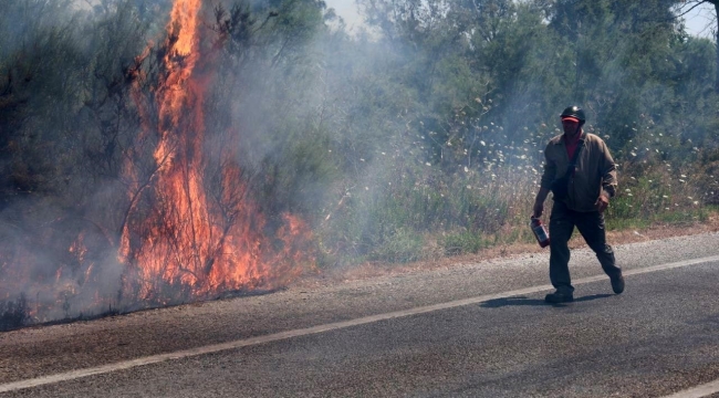 Alevlerin rüzgarın etkisiyle ormanlık alana doğru ilerlemesi, yapılan müdahale ile engellendi.
