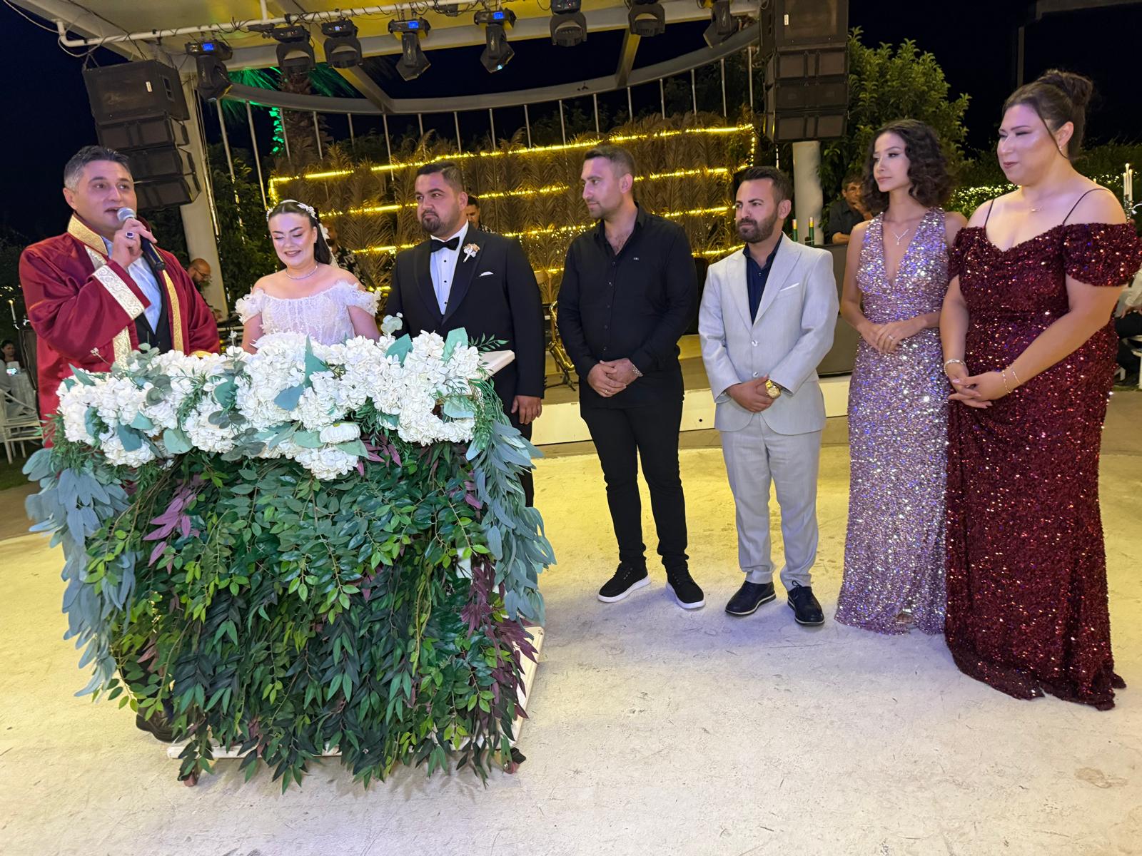 Kına gecesi 19 Eylül’de Helvacı Düğün Salonu’nda yapılırken, düğün töreni 21 Eylül Pazar günü Myrina Garden’da gerçekleştirildi. Ailelerin ve yakın dostlarının katıldığı düğünde davetliler genç çiftin nikâhına şahitlik etti.