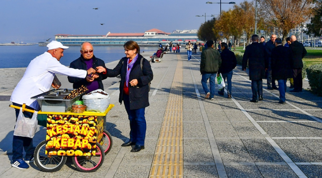 Kestane satıcılığının aile mesleği olduğunu ve 25 yıldır bu işi yaptığını ifade eden Mehmet Acar da Büyükşehir Belediyesi tarafından başlatılan çalışmanın kendilerine umut verdiğini söyledi. Başkan Tunç Soyer’e teşekkür eden Acar, “Bizler yağmur çamur demeden ekmeğimiz için çalışan insanlarız. Daha önce kargaşa vardı. Ömrümüz zabıtadan kaçmakla geçiyordu. Sürekli tedirgindik. Şimdi evimizden mutlu, çocuklarımızı öperek çıkıyoruz. O tedirginlikler son buldu” diye konuştu.