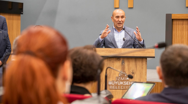 Başkan Tunç Soyer, “Görevimin dördüncü senesi dolarken emin olun ki bu kurumda çalışıyor olmaktan, sizlerle beraber olmaktan, böyle büyük bir sorumluluğu üstlenmekten çok gurur duyuyorum. Çünkü İzmir Büyükşehir Belediyesi'nin ürettiği hizmetlerin kalitesinin, yaptıklarının, çalışmalarının hakikaten çok farklı olduğunu görüyorum” diyerek sözlerine başladı.