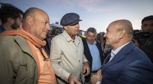 Ziyaretlerin ardından Duman konseri öncesi alanda bulunan vatandaşlara seslenen İzmir Büyükşehir Belediye Başkanı Tunç Soyer, “Gerçekten İzmir 100 yıl önce kurtuluşun ve kuruluşun şehri olmuş. 100 yıl önce bizim atalarımız olağanüstü zor koşullarda cumhuriyeti hediye etmişler bize. Onlar 1923 kuşağı, 1923 kuşağından sonra çok kuşaklar gelmiş bu topluma. 68 kuşağı, 78 kuşağı... Şimdi 2023 kuşağının zamanı. Şimdi 2023 kuşağı yani sizler yeniden İzmir'i kurtuluşun ve kuruluşun şehri yapacaksınız. Cumhuriyet'i demokrasi ile taçlandıracaksınız. Neşenizi çaldılar, eğlencenizi çaldılar, sizi korkuttular, işsiz bıraktılar. Ama hepsinin sonu geldi. Yepyeni bir ülke doğacak. Hep beraber güler yüzle el ele yaşayacağız” dedi.