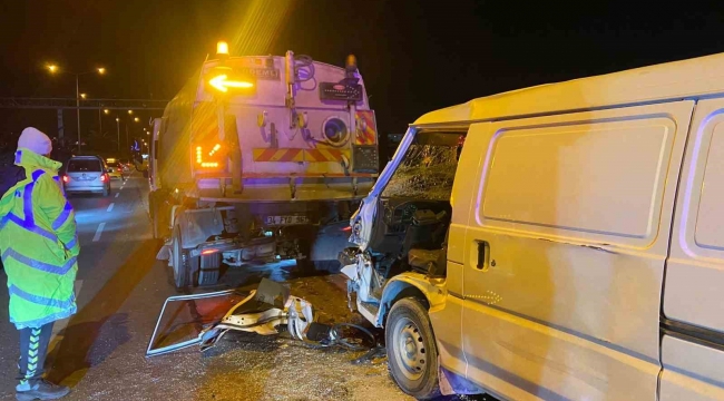 Temizlik Aracına çarpan sürücü, sıkışan araçtan güçlükle kurtarıldı