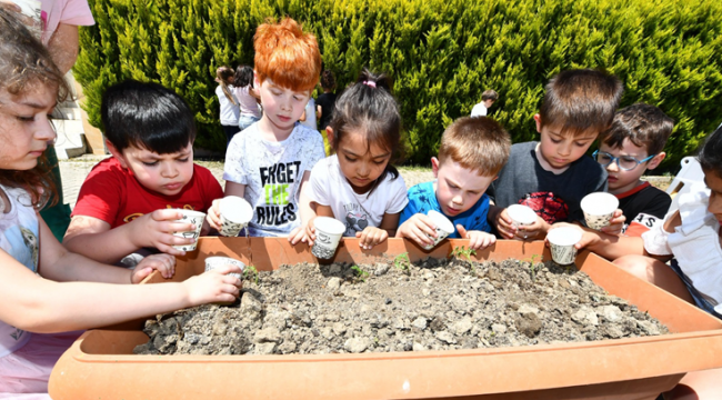 Tarım projeleriyle Türkiye’ye örnek olan İzmir Büyükşehir Belediyesi toprak sevgisini çocukluktan aşılıyor. İZELMAN Anaokulları'nın Bornova EVKA - 4 Yeşiltepe Kreş ve Anaokulu Eğitim Merkezi'nde hayata geçirilen tarım atölyesi ile öğrenciler üretim sürecine dahil ediliyor.