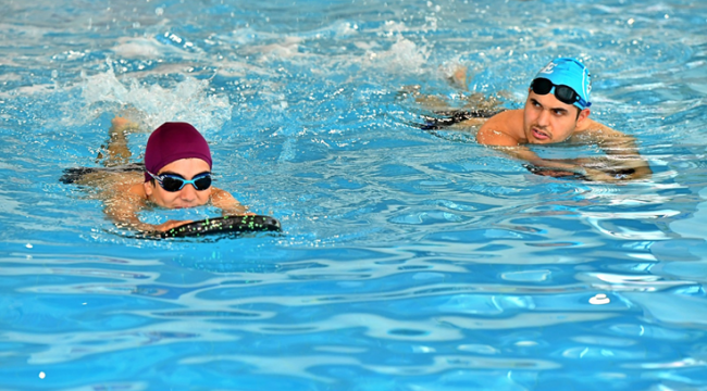 İzmir Büyükşehir Belediyesi’nin yüzme sporunu teşvik etmek için kente kazandırdığı yarı olimpik yüzme havuzu Havuz İzmir, spor yapmak isteyen engelli bireylere kucak açıyor. Her hafta Salı, Çarşamba, Perşembe ve Cuma günü birebir ve grup eğitimlerine katılan engelli çocuk ve gençler yüzme dersleri sayesinde kas gelişimlerini artırıyor.