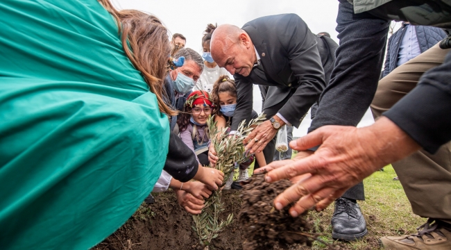 Başkan Soyer, müze bahçesinde yer alan Türkiye’nin ilk Zeytin Barış Parkı’nın açılışını da yaptı.